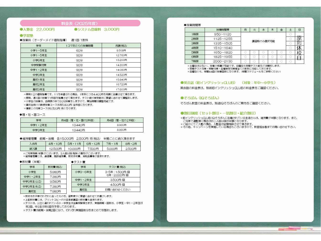 なお状況により(原則中学3年生は必ず)中学生は国語理科社会の小集団授業を設定しており県立高校入試5教科に完全対応しております。