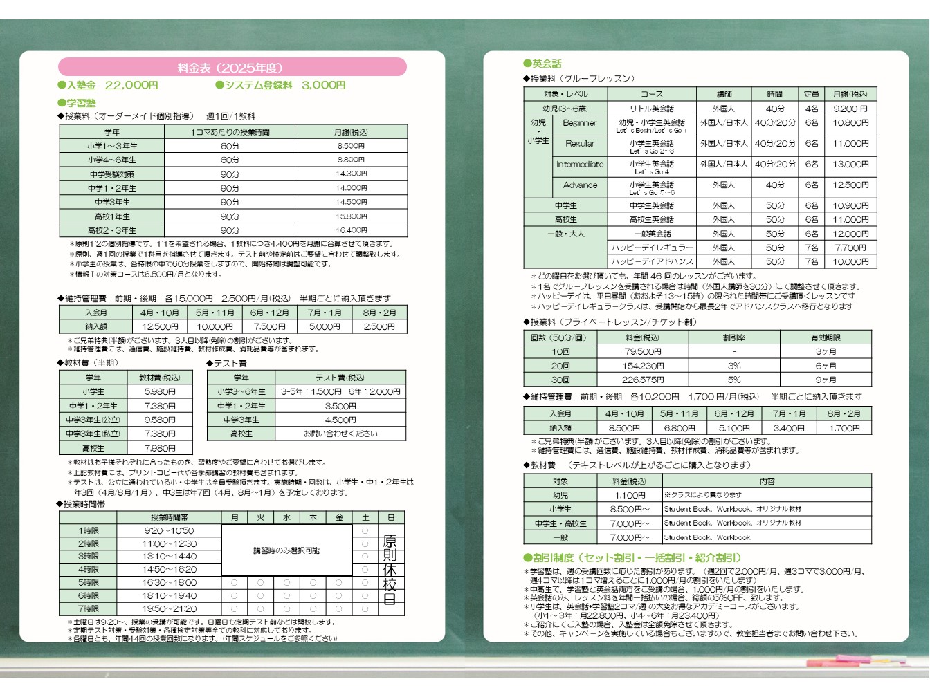 また、若松中学校、習志野市立第七中学校を始めとする地域の公立中学校向けのテスト対策にも注力しています。校舎は駅から近いため通いやすく、商業施設の中にあるため安全面でも高い評価をいただいております。